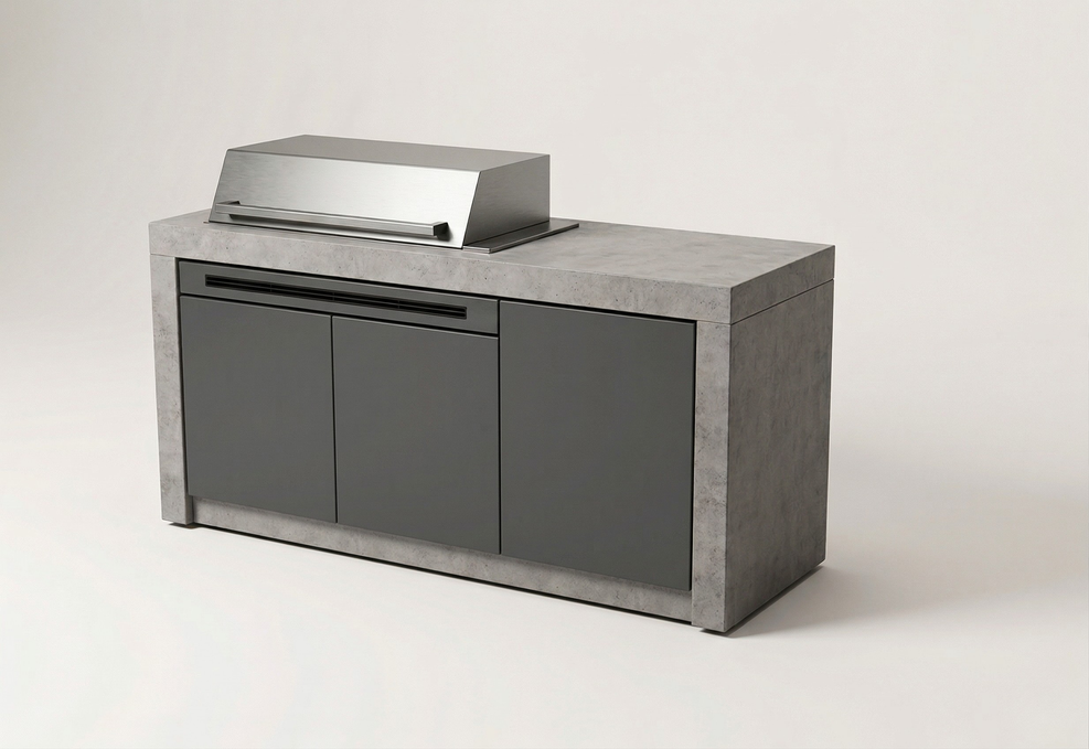 The Inset: The integrated BBQ sits within a precision cutout, creating a seamless, flush-mount transition between stainless steel and artisan concrete. This design will suit the Beefeater Proline, ARTUSI and Tucker Horizon BBQ units as well as the large front controlled BBQ units(Contact us if you have a different BBQ unit)
